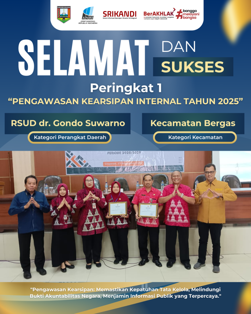 Selamat dan Sukses Kepada Peringkat #1 “Pengawasan Kearsipan Internal Tahun 2025” Kategori Perangkat Daerah dan Kecamatan.